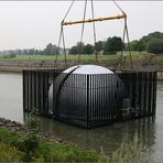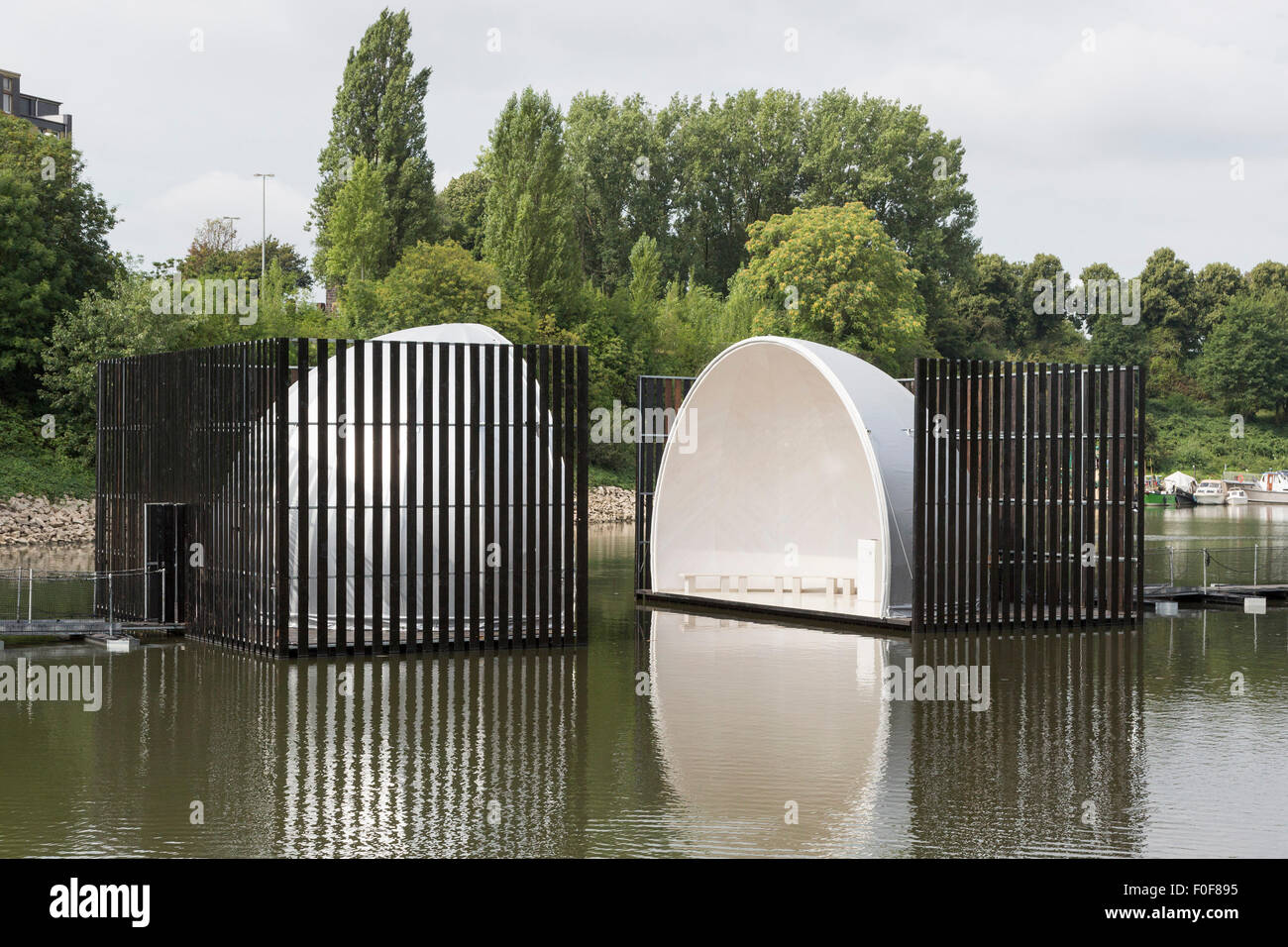 Duisburg Ruhrort Germany 14 August 2015 Nomanslanding Is A Walk On Installation Floating On Water Devised By Five Artists Robyn Backen Aus Andre Dekker Nl Graham Eatough Uk Nigel Helyer And Jennifer Turpin Both